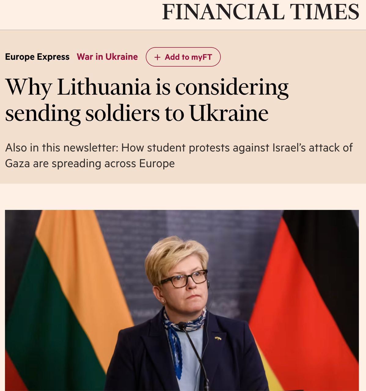 10.57 Литва готова отправить своих солдат в Украину с учебной миссией, заявила Financial Times премьер-министр страны Ингрида Шимоните.