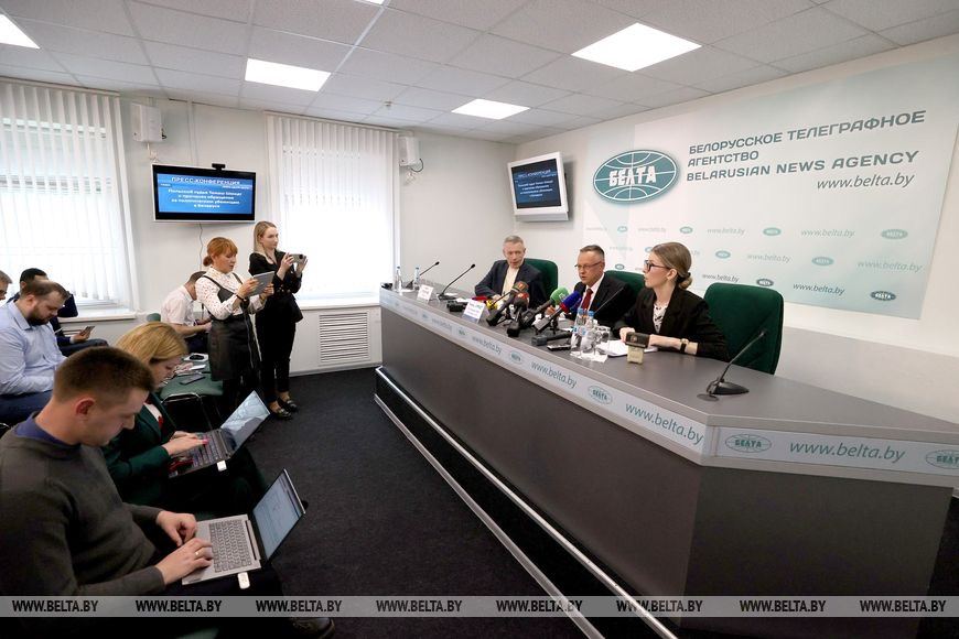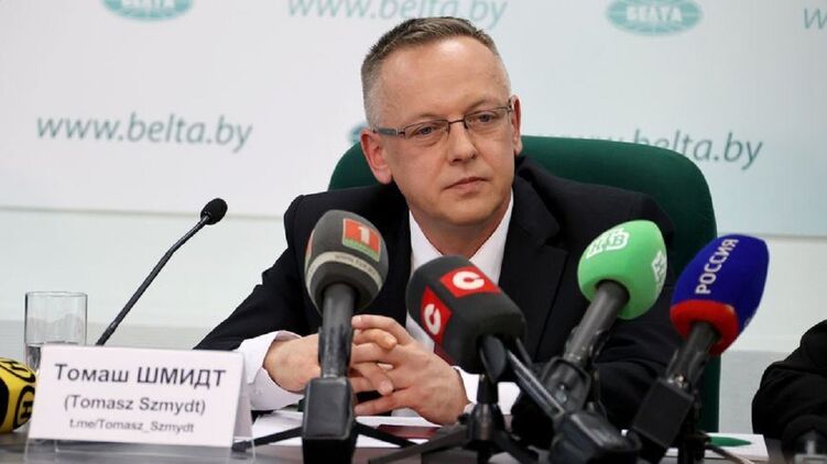 На пресс-конференции в Минске Шмидт заявил, что вынужденно покинул Польшу, потому что "подвергался преследованиям и угрозам за самостоятельную политическую позицию". Он выразил "несогласие с политикой и действиями властей" Польши, которые, по его мнению, под влиянием США и Великобритании "ведут страну к войне". А президента Беларуси Александра Лукашенко назвал "очень мудрым руководителем".