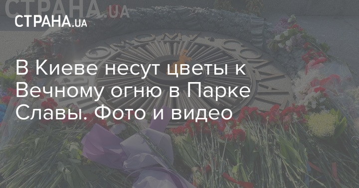 С утра 9 мая киевляне несут цветы к Вечному огню в Парке Славы.
