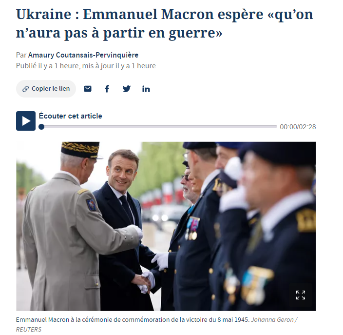 "Я надеюсь, что Франции не придется воевать. Франция - мирная, а не военная держава. Но, безусловно, если хочешь мира, то нужно его защищать. Поэтому нужно вооружаться, временами оказывать сдерживающее влияние на наших соперников", - пишет издание.