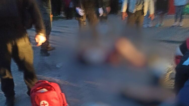 На кадрах можно увидеть, что на тротуаре лежат двое людей – полицейский и другой мужчина. Около полицейского столпились люди, ко второму пострадавшему, который весь в крови, практически никто не подходит.