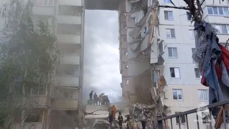 В обрушившимся подъезде в Белгороде рухнула крыша. РФ заявляет о прилете, Украина говорит о взрыве изнутри
