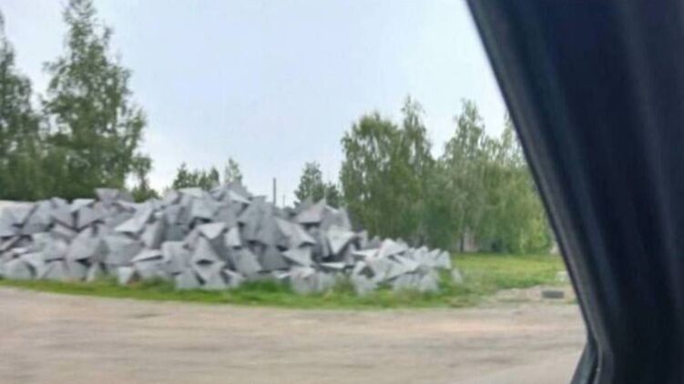 У границы с Россией под Сумами груды "зубов дракона" сброшены на обочину дороги. Фото