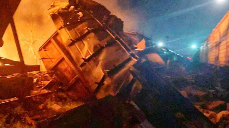 В сети появились фото ночного удара по железной дороге в Харьковской области.