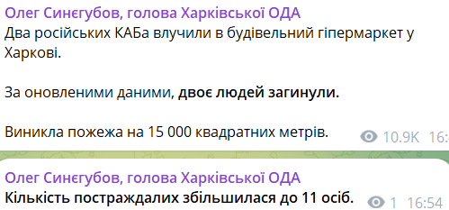 Кроме того, видео последствий прилёта по Харькову опубликовал и президент Украины Владимир Зеленский. По его словам, в гипермаркете в момент удара могли находиться более 200 человек.