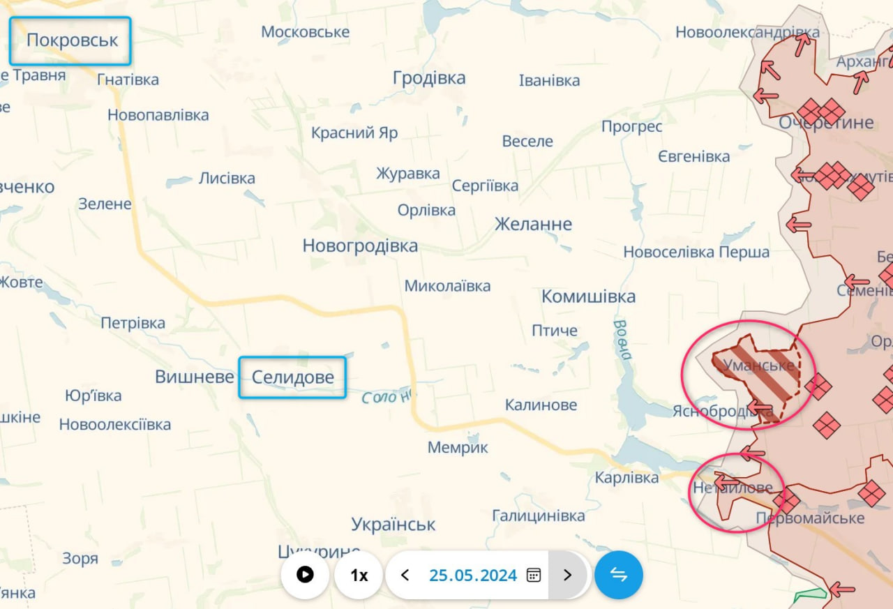 Вчера ресурс Deep State сообщил о потере Уманского (ранее об этом писали российские паблики). Это село является важным пунктом обороны ВСУ в направлении Селидово и Покровска Донецкой области.