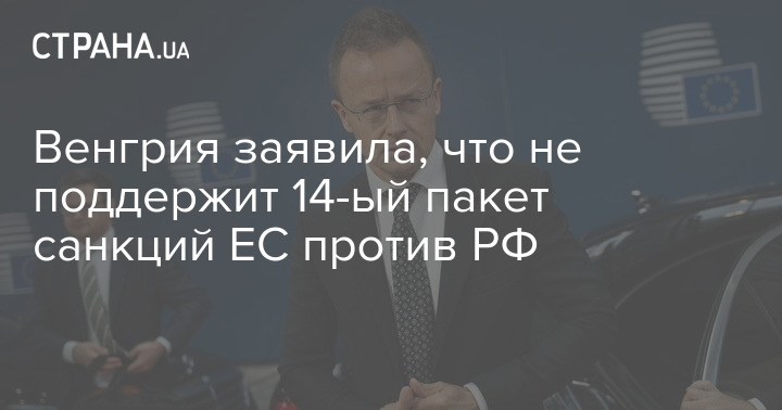 Министр иностранных дел Венгрии Петер Сийярто заявил, что Будапешт не поддержит 14-ый пакет санкций Евросоюза против РФ.
