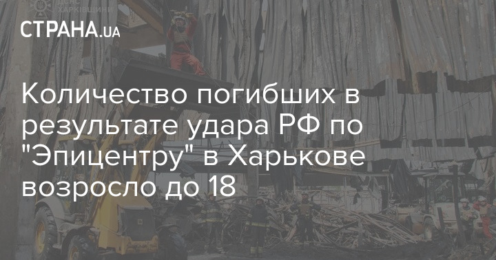 Количество погибших в результате удара РФ по "Эпицентру" в Харькове возросло до 18