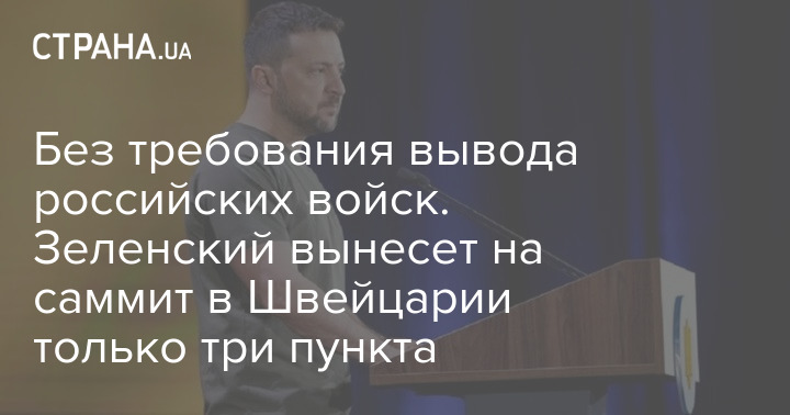 Президент Украины Владимир Зеленский снова подтвердил, что на саммит в Швейцарии вынесут только три пункта, среди которых не будет требования вывода российских войск.