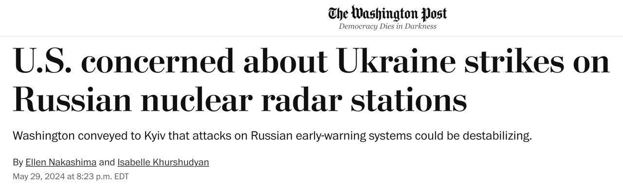 10.53 США обеспокоены ударами Украины по российским ядерным радиолокационным станциям, сообщает The Washington Post.