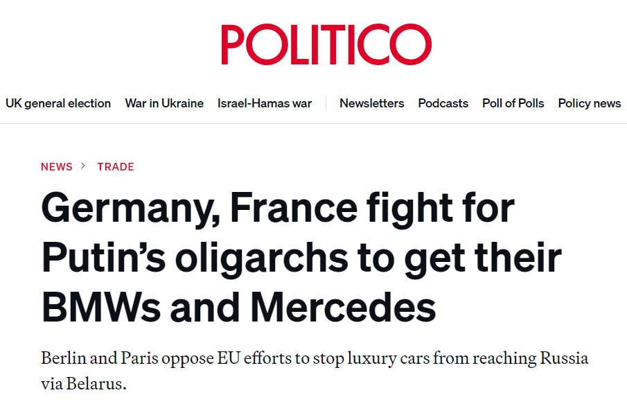 Германия и Франция сражаются за то, чтобы российские олигархи получали свои автомобили BMW и Mercedes.