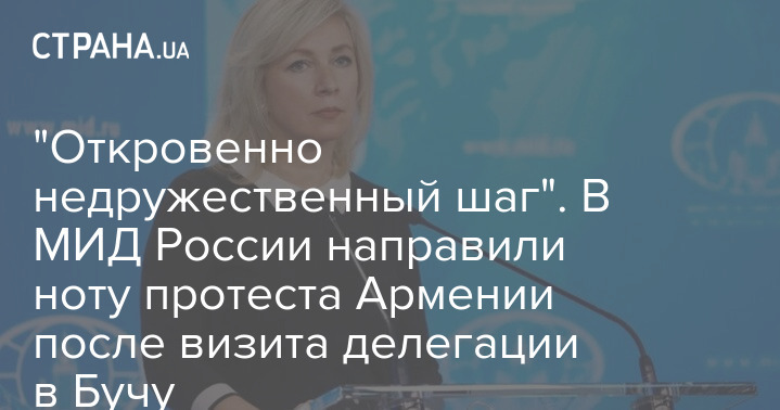 Захарова прокомментировала визит армянской делегации в Бучу, который состоялся 2 июня. По ее словам, Москва расценила поездку "как откровенно недружественный шаг". Она добавила, что МИД России направил Армении ноту протеста.