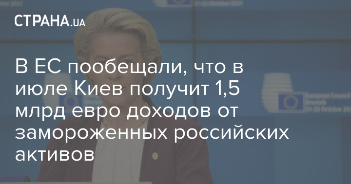 Глава Еврокомиссии Урсула фон дер Ляйен заявила, что в июле Украина получит от Европейского Союза полтора миллиарда евро доходов от замороженных российских активов. 90% этой суммы пойдет на закупку оружия.
