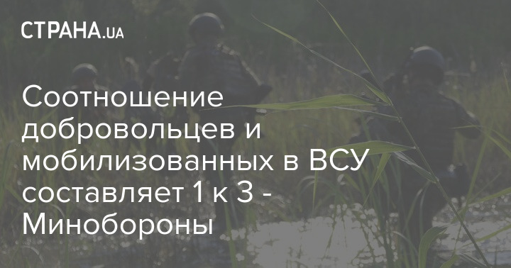 Заместитель министра обороны Наталья Калмыкова заявила, что соотношение добровольцев и мобилизованных в ВСУ составляет 1 к 3.