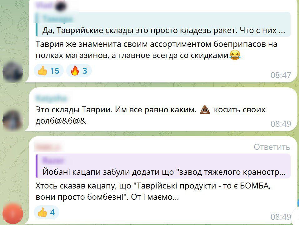 Местные жители в комментариях к сообщениям в городских телеграм-каналах указывают, что удар был по складам гипермаркета "Таврия-В", расположенных в районе бывшего завода "Краян".
