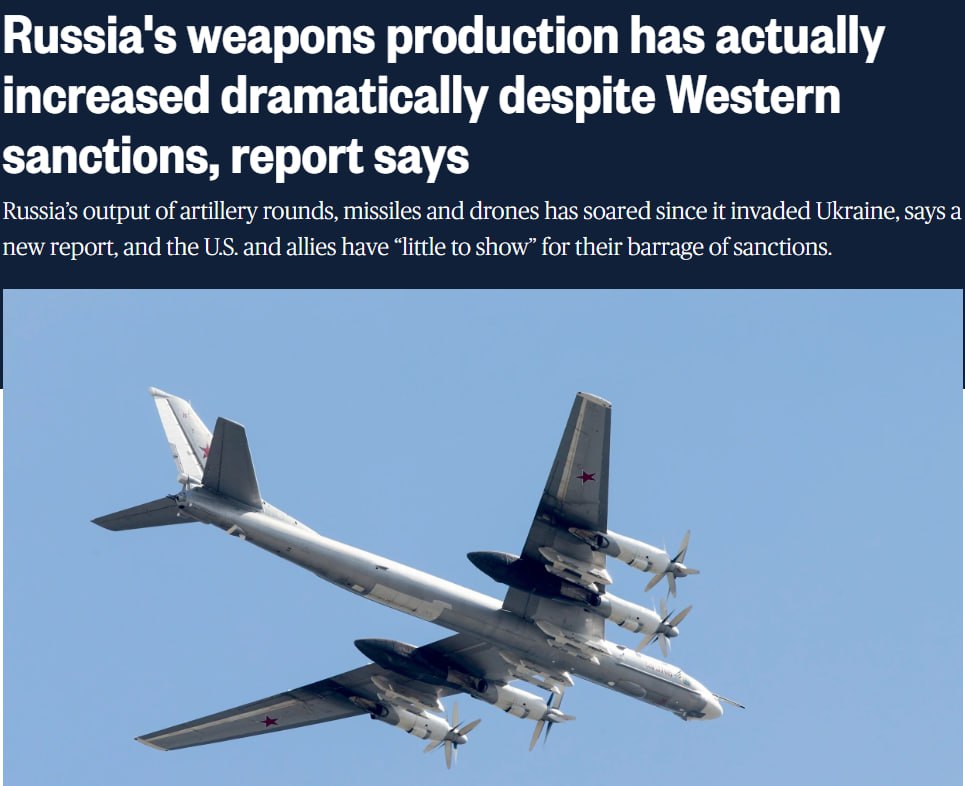 "Таким образом, несмотря на усердные усилия многих государственных служащих, подкрепленные политической волей подорвать российское военно-промышленное производство, это мало что дало", – такой вывод делается в отчете.