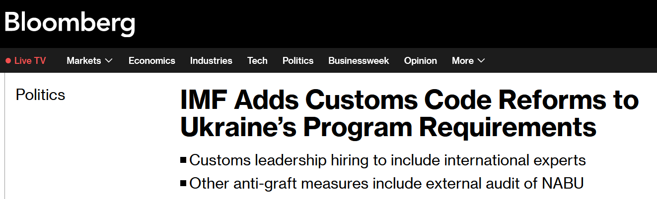 Международный валютный фонд потребовал от Украины внести поправки в Таможенный кодекс для усиления борьбы с коррупцией и продолжения международной финансовой поддержки.