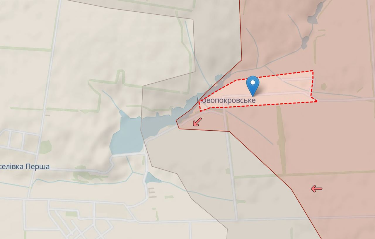 Deep State подтверждает потерю Новопокровского. На карте ресурса серая зона уже зашла восточнее села, за водоем. Правда, захваченным оно отмечено уже довольно давно.