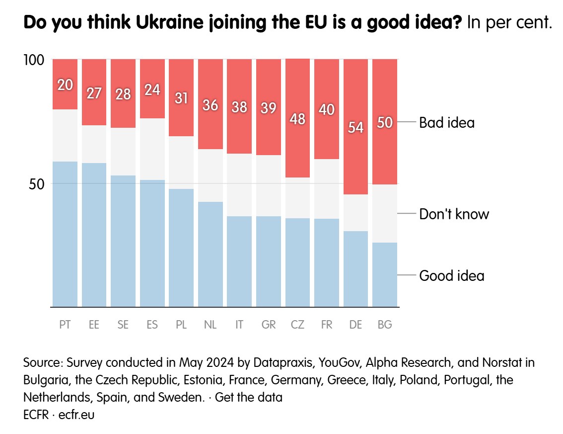 Кроме того, в крупнейших экономиках ЕС противников присоединения Украины к Евросоюзу больше, чем сторонников.