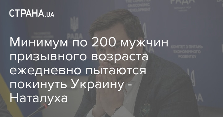 Минимум по 200 мужчин призывного возраста ежедневно пытаются покинуть Украину. Об этом сообщил глава комитета по экономическому развитию, народный депутат Дмитрий Наталуха.