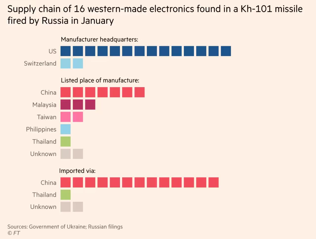 Россия закупает их на открытом рынке и импортирует через Китай. В качестве производителей указываются Китай, Малайзия, Филиппины, Тайвань и Таиланд.