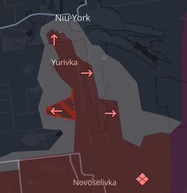 Также, по данным Deep State, российские войска продвинулись в районе Юрьевки под Нью-Йорком (к югу от Торецка). Бои идут уже в центре Нью-Йорка.