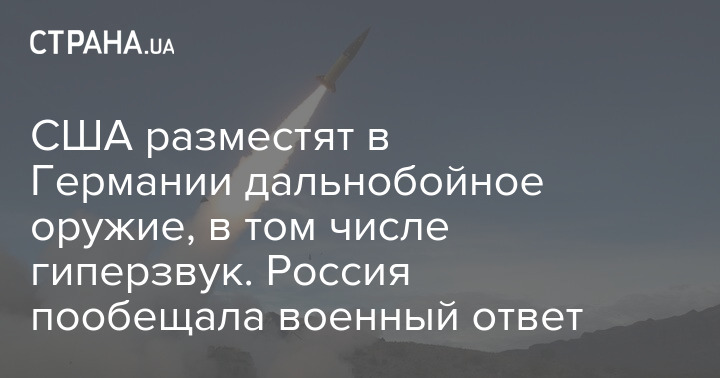 Соединённые Штаты разместят в 2026-м году на территории Германии дальнобойное оружие, в том числе гиперзвуковое, сообщил Белый дом.