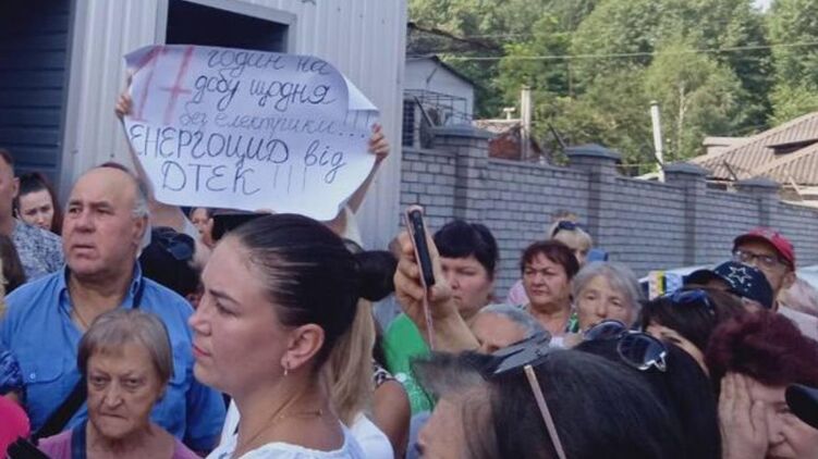 "17 часов в сутки ежедневно без электричества. Энергоцид от ДТЭК"; "Свет городу, а не элите", - гласили самодельные плакаты.