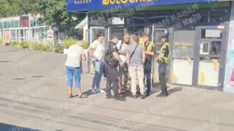 На Нивках очевидцы засняли, как мужчину пытались увести трое полицейских.