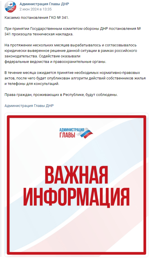 Но до весны 2024 года это был в целом вялотекущий и несистемный процесс. Ситуация изменилась в марте, когда практически одновременно назначенные россиянами "власти" четырех областей приняли решения о порядке признания жилья "безхозным".