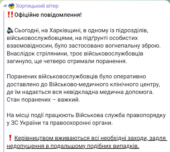 Трое военнослужащих погибли и четверо ранены из-за стрельбы в воинской части в Харьковской области.