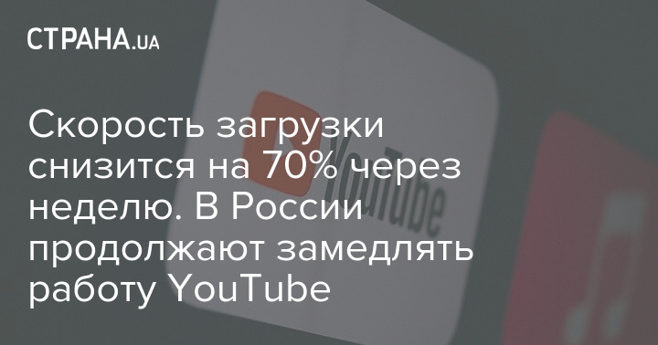 В России продолжают замедлять скорость работы YouTube. Депутат Госдумы РФ Александр Хинштейн заявил, что до конца недели скорость загрузки видеоплатформы на стационарных компьютерах может снизиться до 40%, а к концу следующей - уже до 70%.