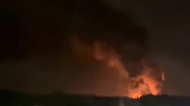 В результате воздушной атаки загорелось три резервуара с топливом. Местные власти заявляют, что среди людей пострадавших нет.