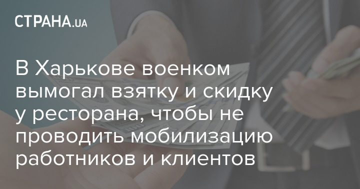 В Харькове сотрудник районного ТЦК требовал взятку с ресторана, угрожая мобилизовать его работников и посетителей. Ему объявили о подозрении по статье о вымогательстве и получении должностным лицом неправомерной выгоды.
