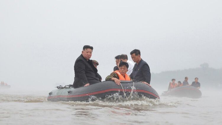 В Северной Корее прошли катастрофические наводнения. После стихийного бедствия глава страны Ким Чен Ын лично приплыл в зону затопления, чтобы руководить спасательными работами.