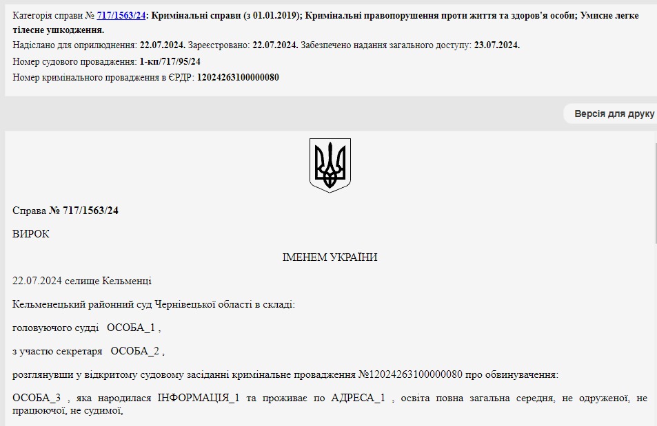Об этом говорится в приговоре Кельменецкого районного суда от 22 июля, опубликованном в Едином реестре судебных решений.