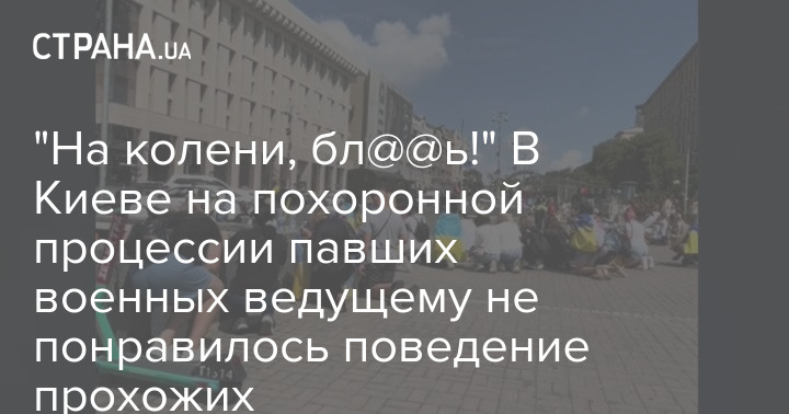 В Киеве на похоронной процессии павших украинских солдат ведущий в микрофон приказал прохожим стать на колени.