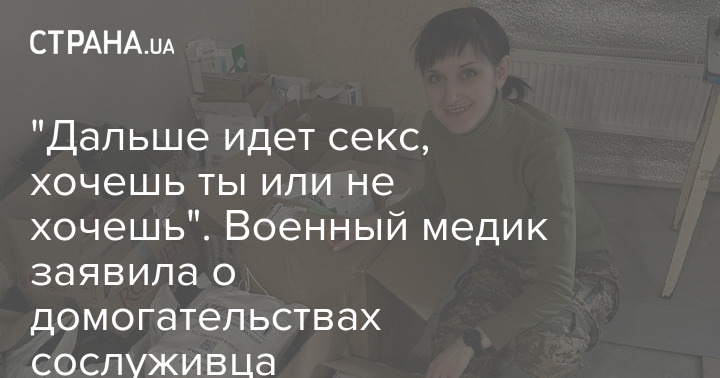 Военный медик по имени Оксана рассказала о сексуальном домогательстве к ней со стороны военного водителя Сергея и давлении командования в связи с этой историей.