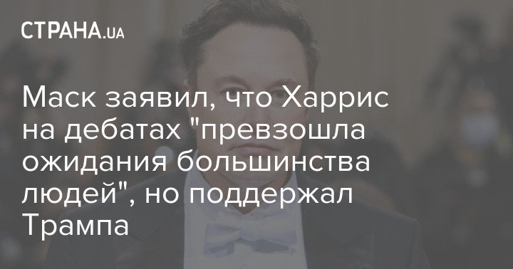Илон Маск заявил, что кандидат в президенты США от демократов Камала Харрис на дебатах "превзошла ожидания большинства людей", но поддержал кандидата от республиканцев Дональда Трампа.