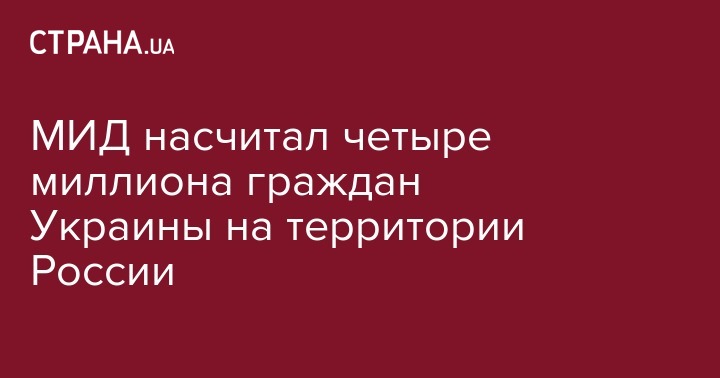 Министерство иностранных дел заявляет о пребывании четырех миллионов граждан Украины на территории России. Как сообщают "Украинские Новости" об этом в ходе часа вопросов Верховной Рады к правительству заявил Вадим Пристайко, заместитель министра иностранных дел.