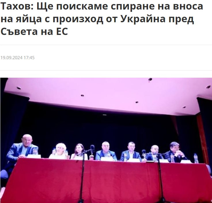 По информации издания, министр сельского хозяйства и продовольствия Болгарии Георгий Тахов на встрече с фермерами обратил внимание на рыночные проблемы болгарских производителей из-за увеличения импорта и на возможность применения защитных мер в соответствии с механизмом предохранителей для ограничения свободной торговли с Украиной.