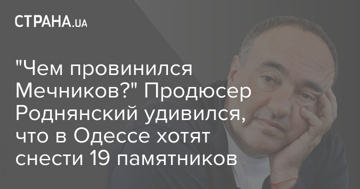 Украинский продюсер Александр Роднянский удивлен предложением снести некоторые памятники в Одессе.