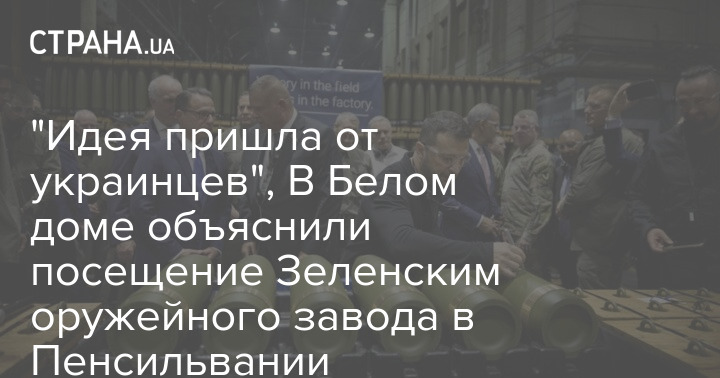 "Идея пришла от украинцев", В Белом доме объяснили посещение Зеленским оружейного завода в Пенсильвании