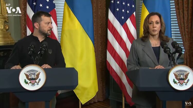 Камала Харрис и Владимир Зеленский выступили на совместном кратком интервью прессе.