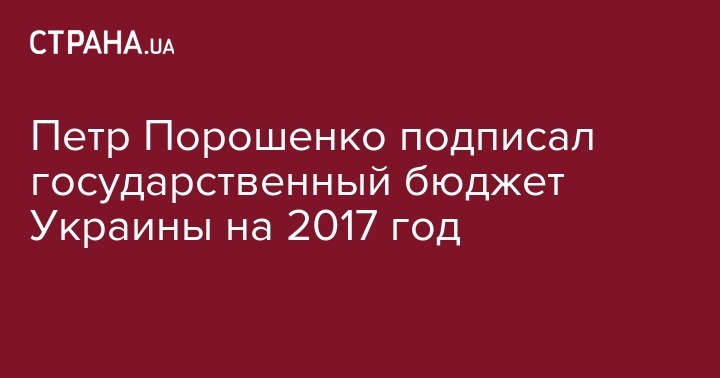 Президент Петр Порошенко утвердил своей подписью Закон о госбюджете на 2017 год. Об этом сообщает пресс-служба президента.