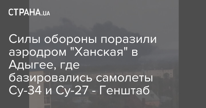 Силы обороны Украины поразили российский военный аэродром "Ханская" в Адыгее, где базировались самолеты Су-34 и Су-27.