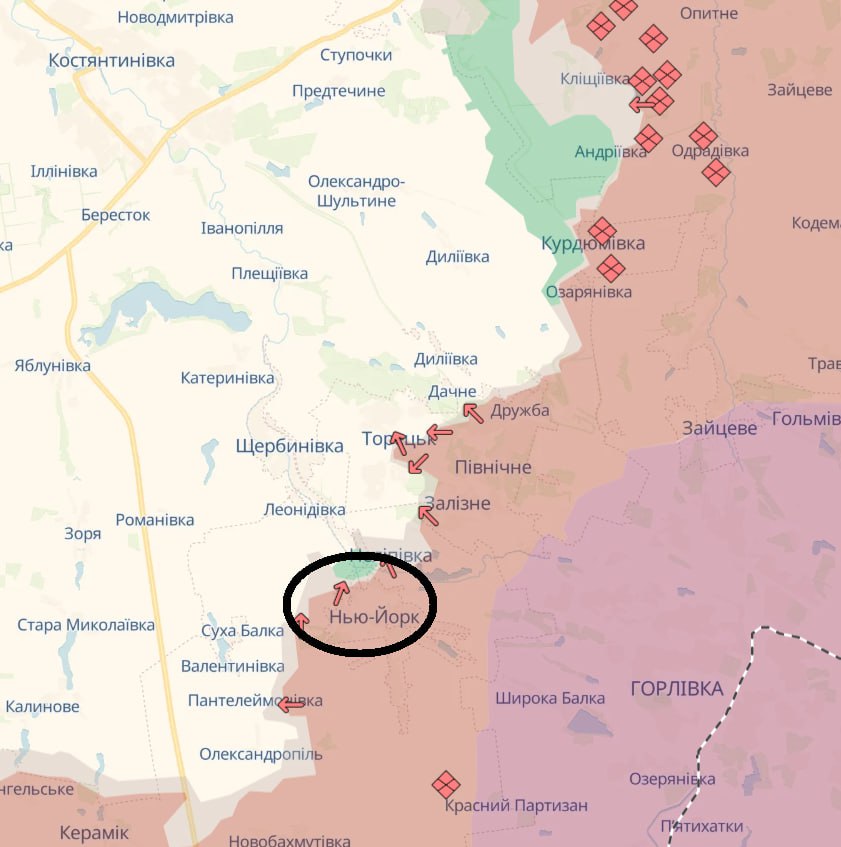 Кроме того, сообщается о продвижении россиян в районе Нью-Йорка (Константиновское направление).