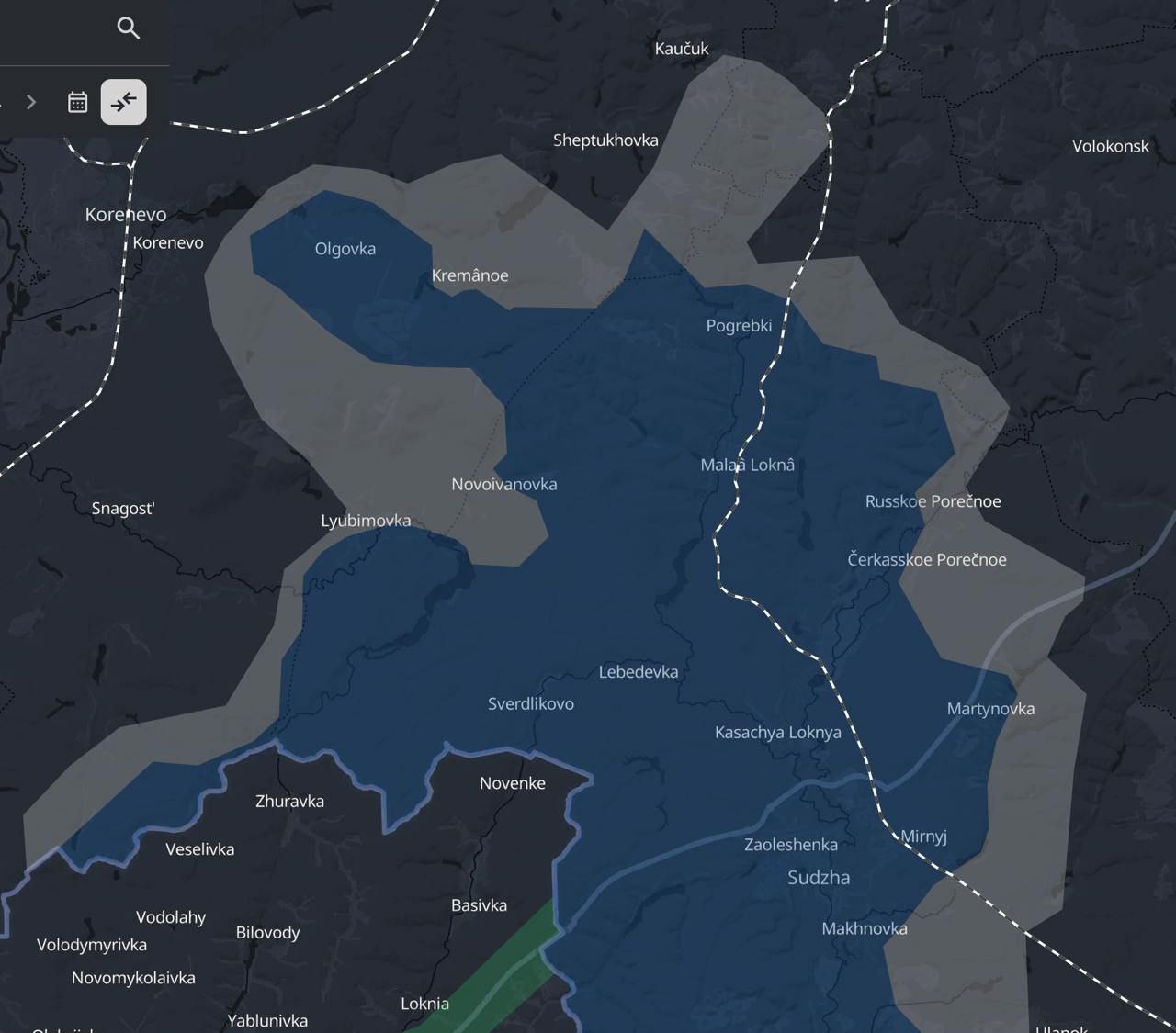 Украинские военные паблики маркируют Любимовку как серую зону (то есть, там продолжаются бои), а Толстый Луг и Ольговку относят к зоне контроля ВСУ.