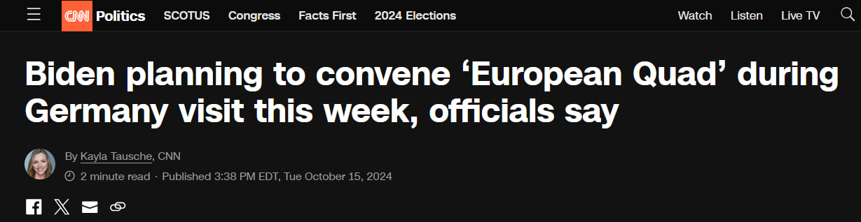 Ранее Байден уже планировал встретиться с тремя главными партнёрами Украины по поставке оружия и президентом Украины Владимиром Зеленским на авиабазе "Раммштайн", но планы изменил урган Милтон. Была ли перенесена встреча и на какой день, сообщений не было.
