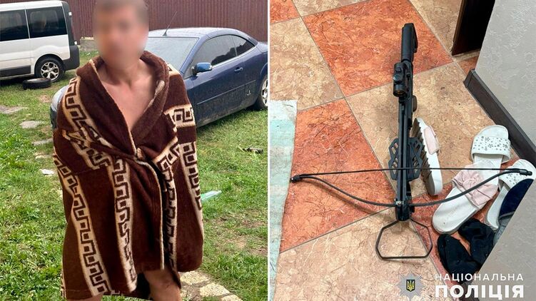 В пригороде Хмельницкого пьяный мужчина стрелял из арбалета в проезжающий автомобиль.